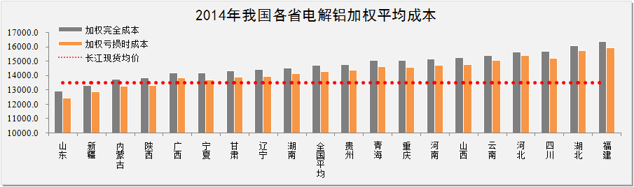 2014年我國電解鋁生產(chǎn)加權成本分析