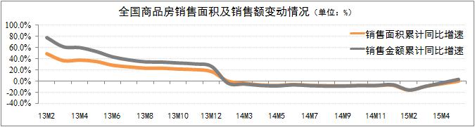 全國商品房銷售市場明顯回暖。國家統計局統計數據顯示:5月份全國商品房銷售面積累計增速同比下降0.2%,降幅環比收窄4.6個百分點;銷售額實現2014年初以來首次正增長,累計同比增速為3.1%。銷售市場回暖主要體現在40個重點城市,非重點城市的投資開發及銷售增速仍呈現下滑趨勢。研究認為,銷售市場回暖的主要原因在于國家政策調控作用引導了市場預期的轉變。