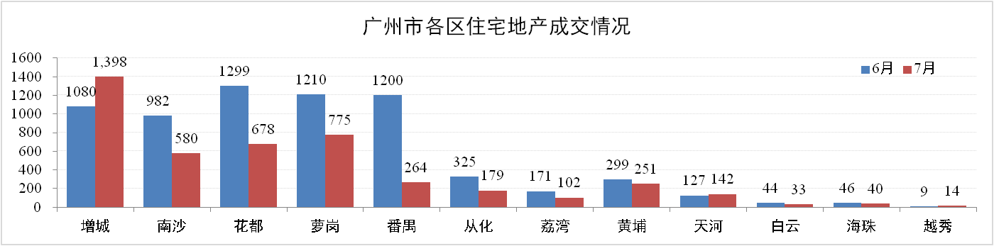分析認為:7月全市成交價格略低于6月平均價格,部分區域出現價格波動,淡季影響價格下跌。預計在未來一段時間內,加上指導價政策的再次強調頒布,廣州市一手住宅成交均價將繼續呈現可控的回落態勢。
